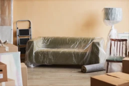 Copri con teli, rimuovi i cuscini e valuta se smontare.